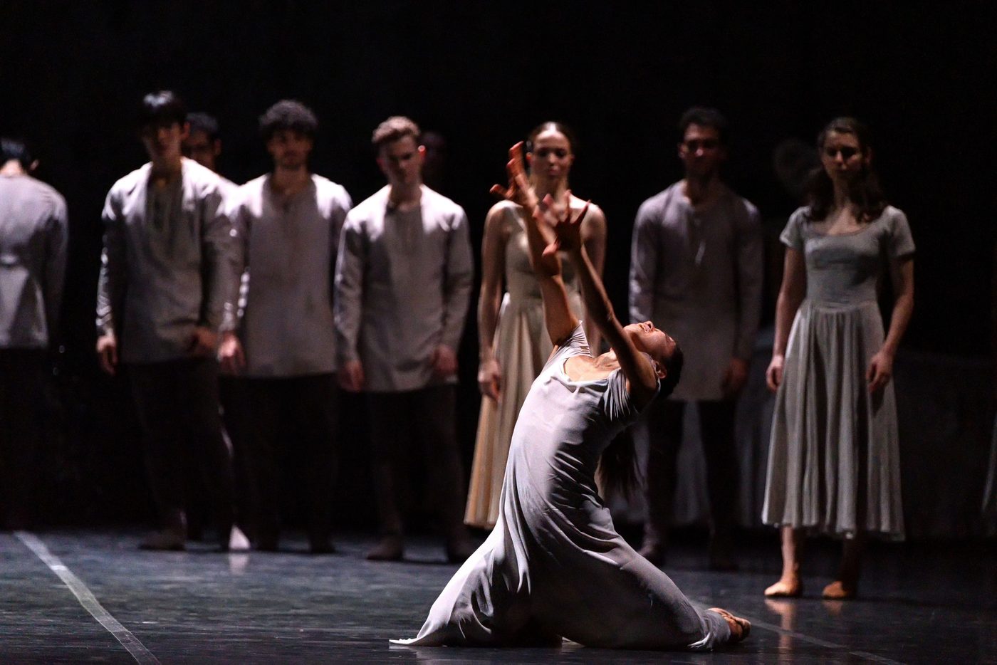 As the curtain rises, dancers in shadow push against a forbidding wall. From that moment on, this ground-breaking production stuns with powerful images.