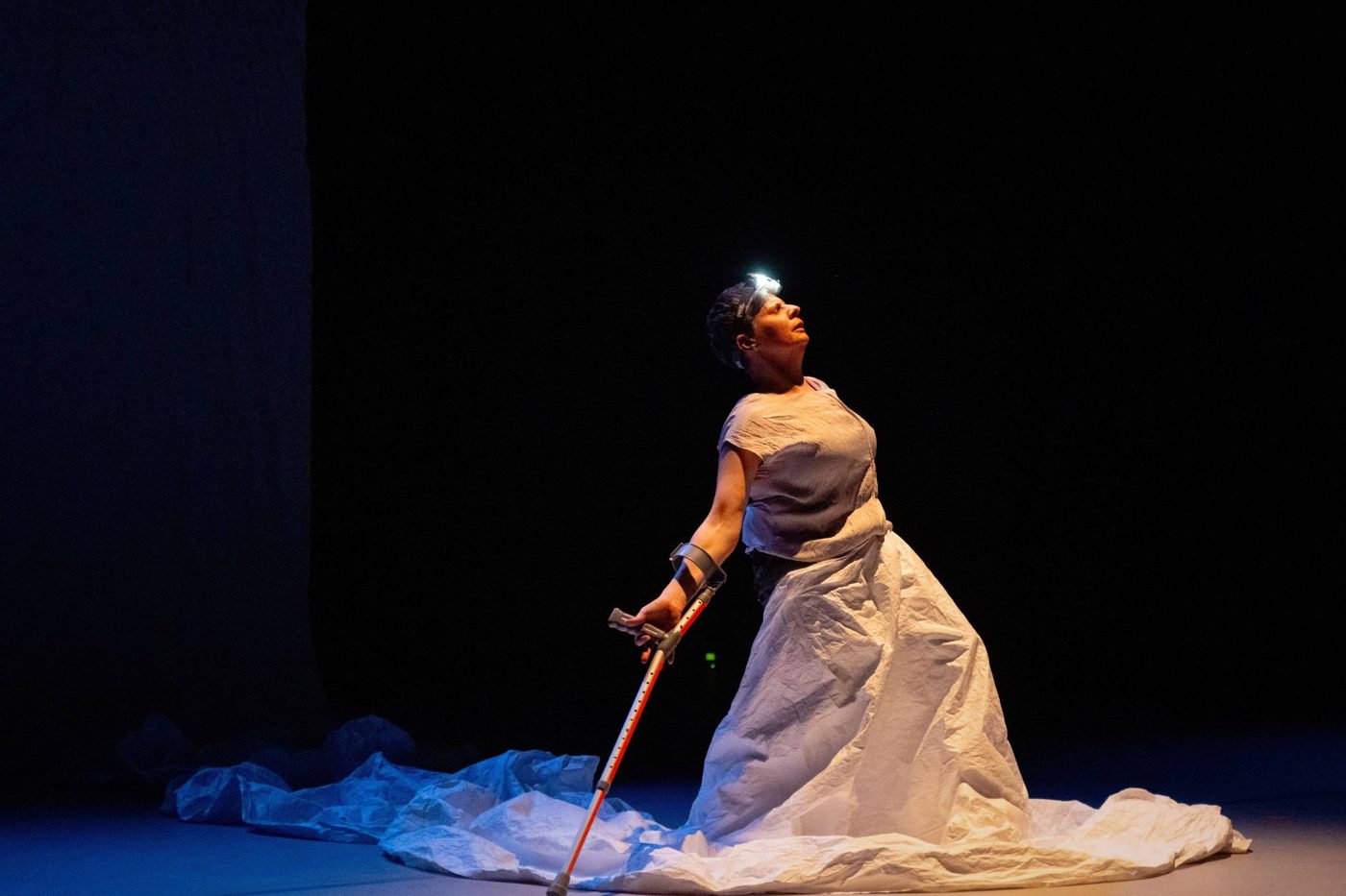 In this new solo Claire Cunningham asks what it is to wander? To seek to scale great heights? What can be learned from those of us who reach for the ground through crutches as 4-legged creatures, the choreography of crip* navigation and the maps we would re-draw? Of scale and time and energy? What it means to keep going and, importantly, the wisdom to know when to turn back.
