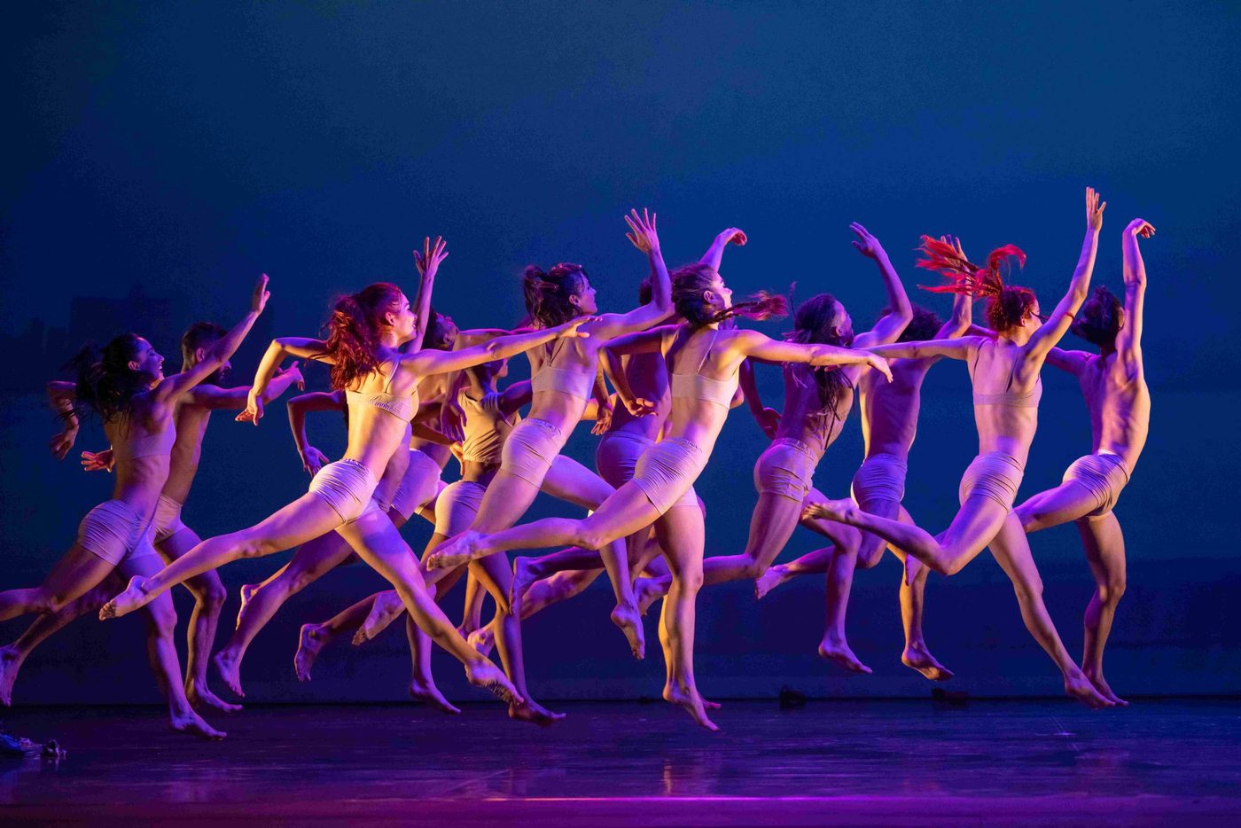 Header image description: A group of dancers in bright, casual street-wear move in sync towards the right. Some of their arms are raised as they move.